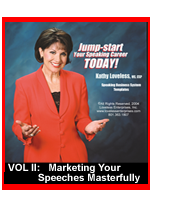 Jump-Start Your Speaking Career, TODAY! Sign up for Kathy Loveless' two-year comprehensive mentoring program onsite in Salt Lake City, Utah or by teleseminar that will save you tens of thousands of dollars and years of work as you develop a professional speaking career. We want you to be successful!